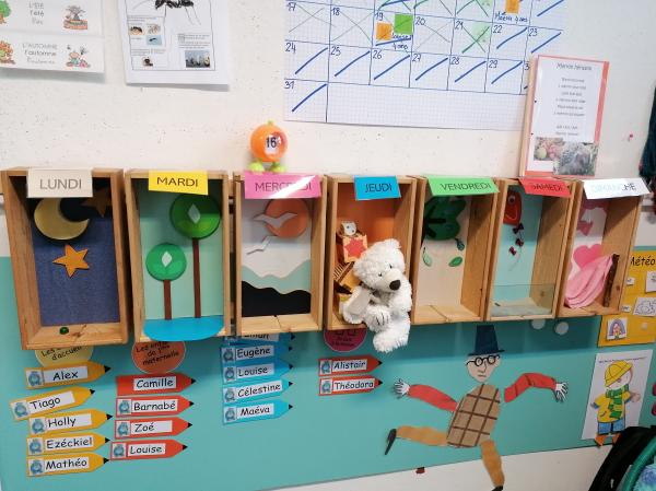 Il y a aussi Sully notre mascotte. Elle console les chagrins, elle nous fait souvent rire et elle nous accompagne dans tous nos moments de vie de la classe et nos apprentissages.